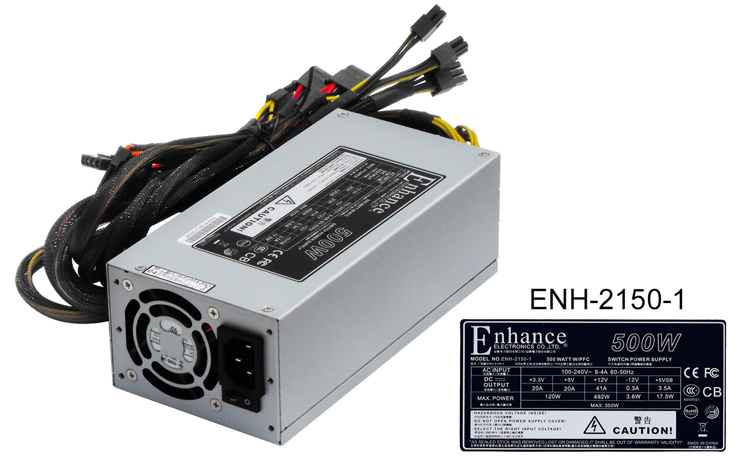 組件名稱規格尺寸100mm(W) 70mm(H) 200mm(L)交流輸入100-240V AC /8-4A /60-50HZ直流輸出+3.3V+5V+12V-12V+5VSB20A20A41A0.3A3.5A額定功率120W492W3.6W17.5W500W主電源接口20Pin+4PinCPU 12V輔助供電接口(4+4)Pin*18Pin PCIE接口8Pin*1D型4Pin接口8個SAT