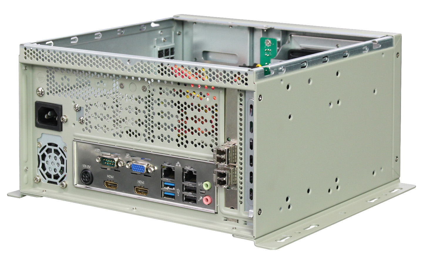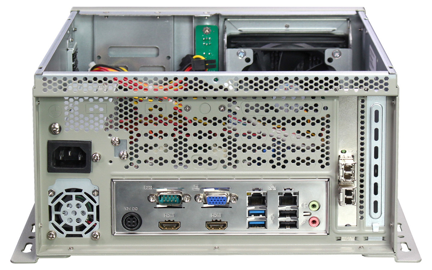 | 擴展空間 | 2個全高PCI/PCIE擴展槽位(豎插),支持寬度≤183mm的擴展卡, 后面板8個敲落式COM口,2個敲落式USB接口,1個敲落式DB37安裝接口,1個敲落式鳳凰端子安裝接口,1個敲落式金屬開關安裝接口 |