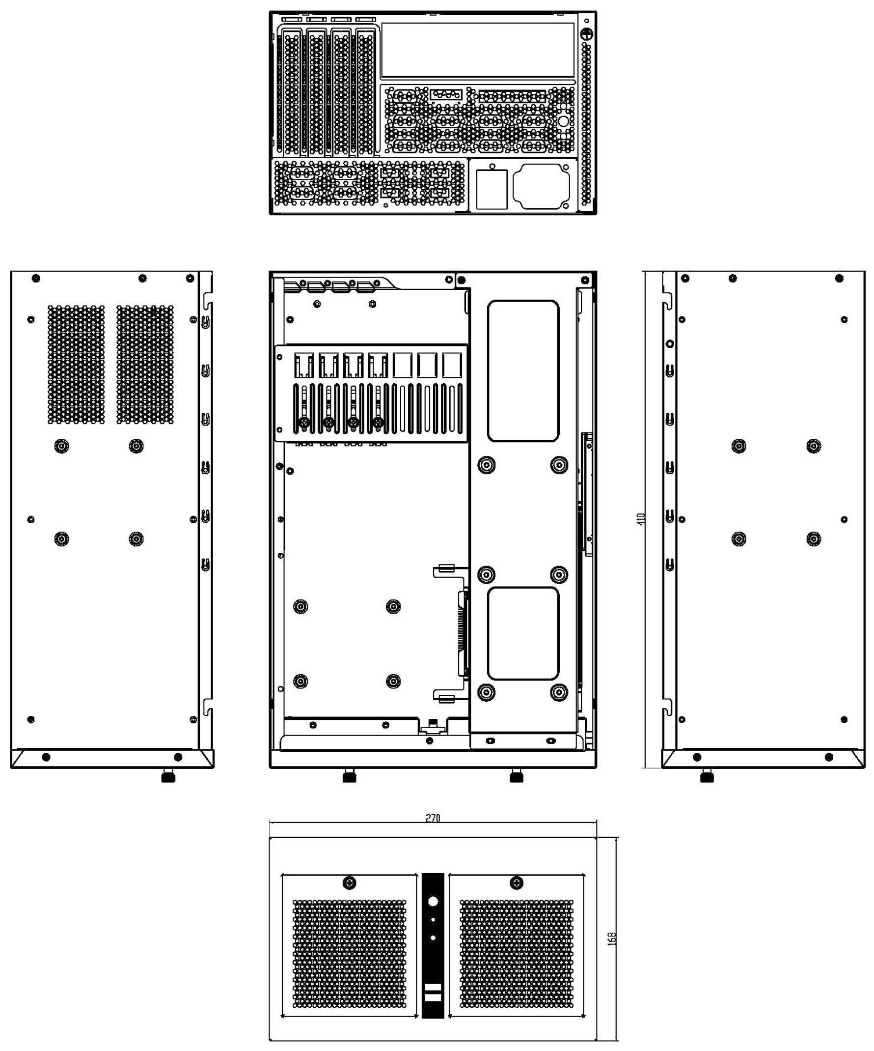 拓普龍4163ML壁掛式工控機箱采用1.0mmSGCC全模具生產而成,機箱尺寸為410mm(L)*270mm(W)*180mm(H),支持9.6"*9.6"(Micro-ATX)及以下尺寸的主板,支持1個3.5" 硬盤位和6個2.5" 硬盤位,標配1個9025B風扇,機箱具有優良的散熱設計,支持Flex 1U電源,支持4個半高PCI/PCIE擴展槽位,機箱后面板設計有豐富的敲落式COM/LPT/USB等接口,廣泛應用于工業控制、智能交通、機械自動化、AI等領域。