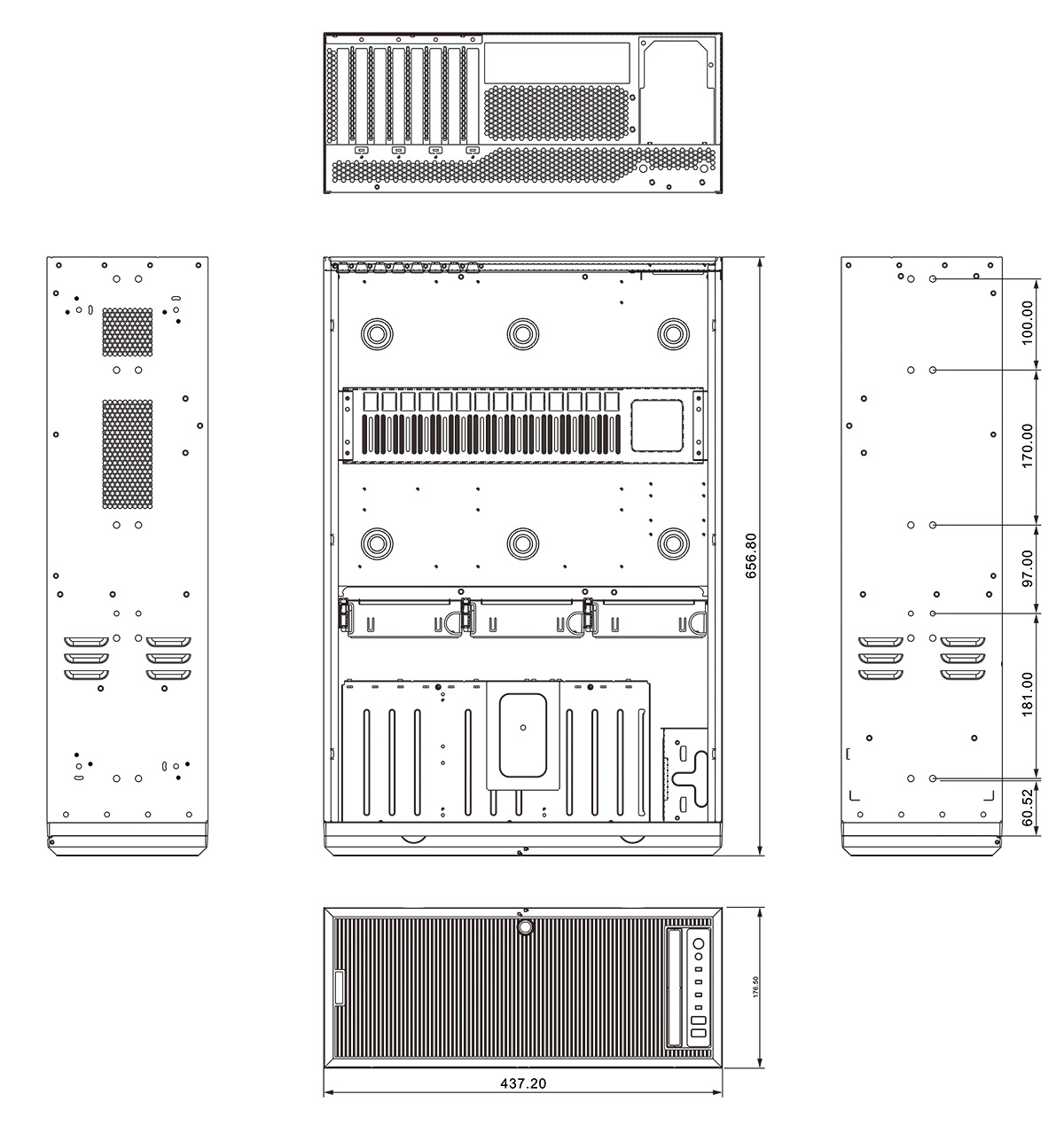 | 機箱尺寸 | 650(L)*437.5(W)*176.5(H)mm,長度不含塑膠面板 |