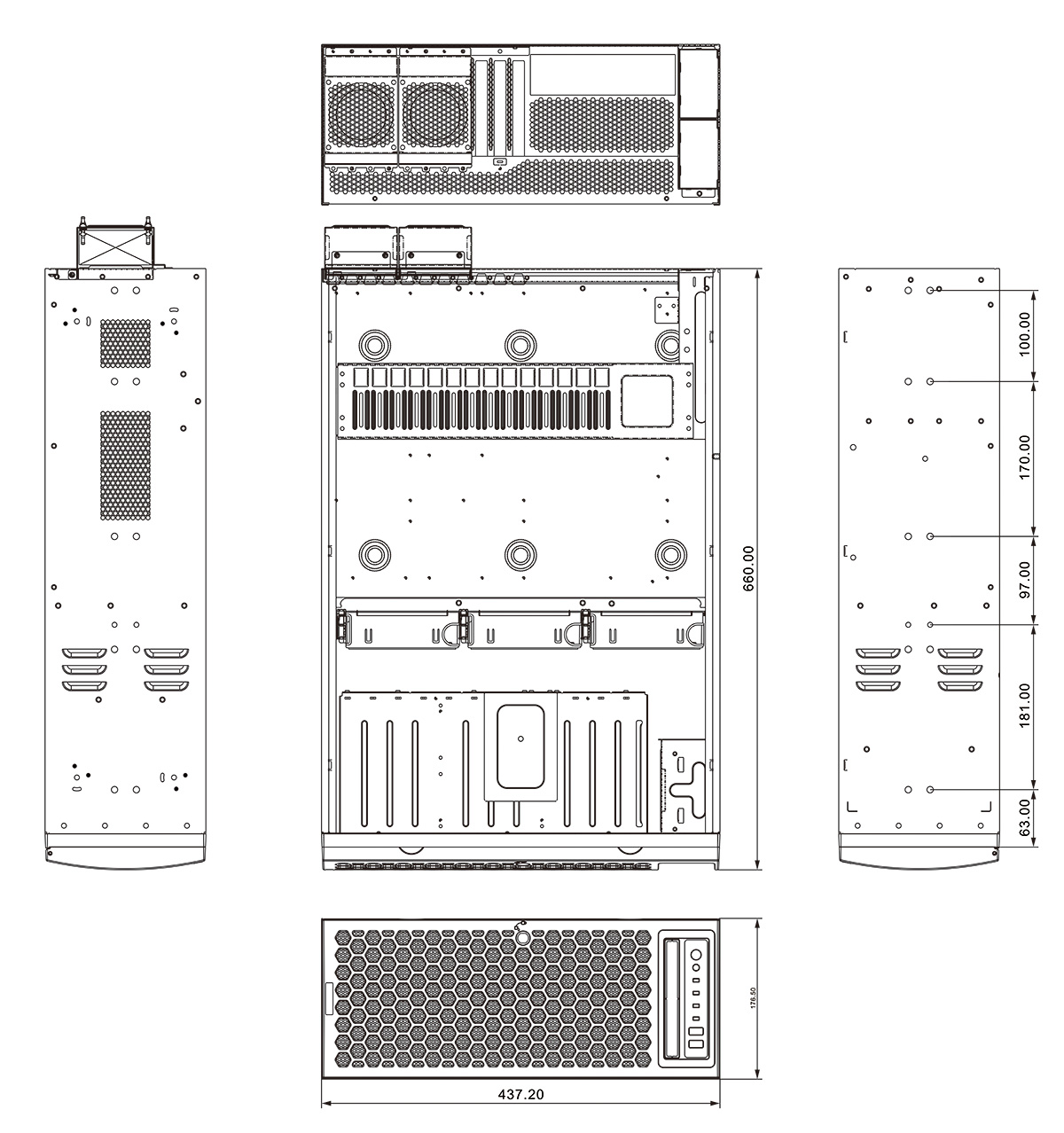 | 機箱尺寸 | 650(L)*437.5(W)*176.5(H)mm,長度不含塑膠面板 |