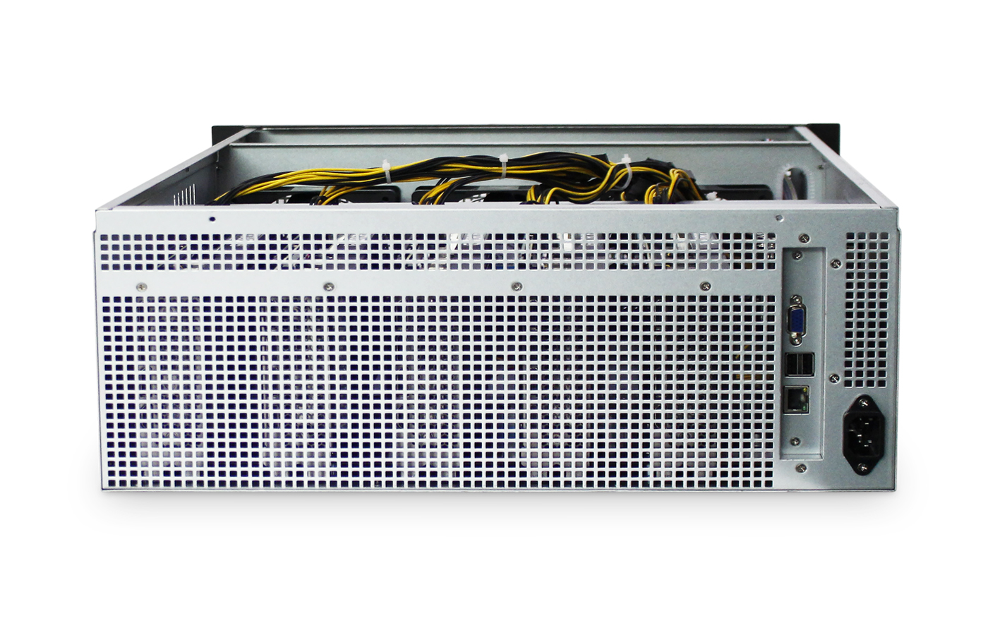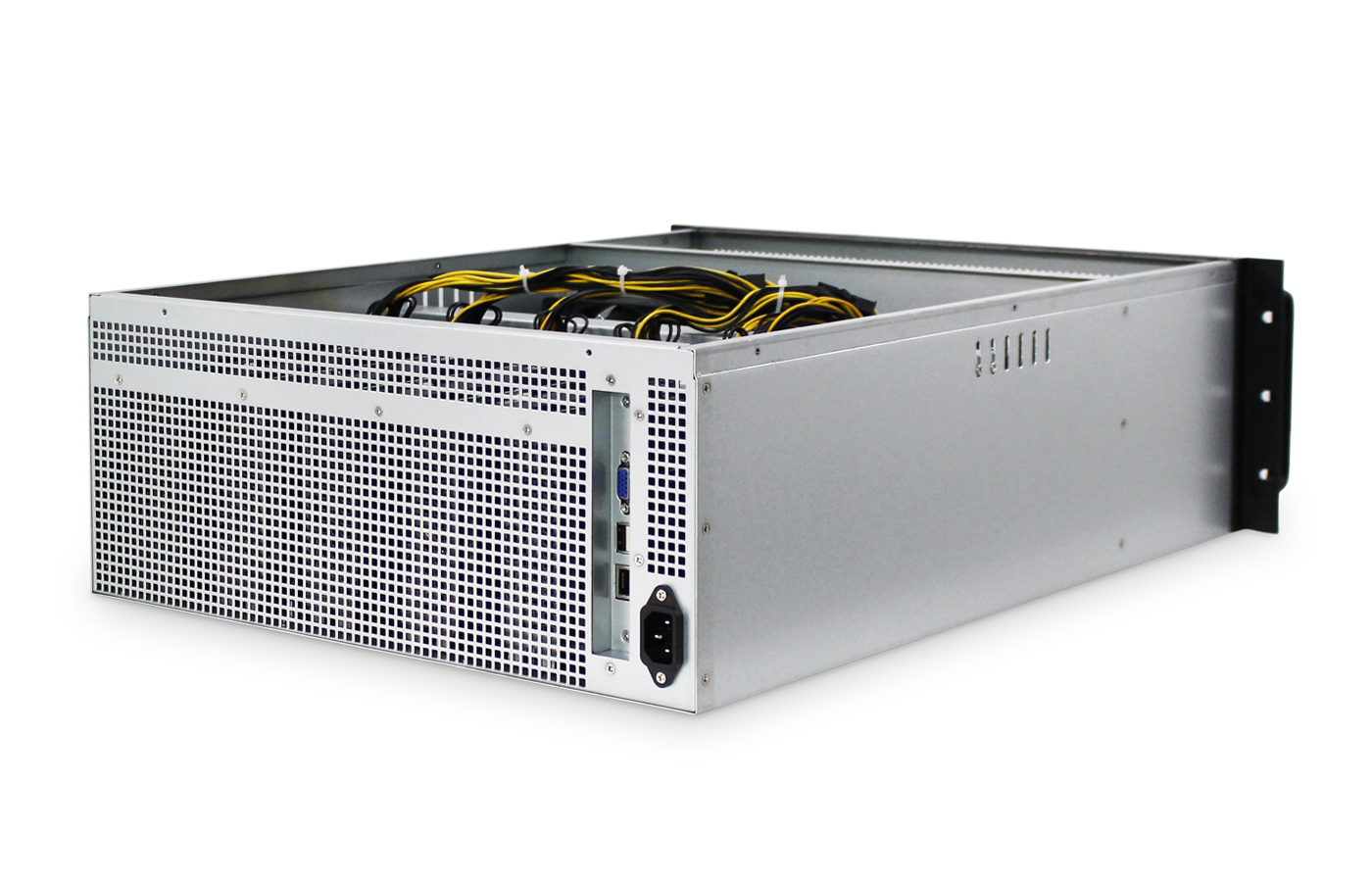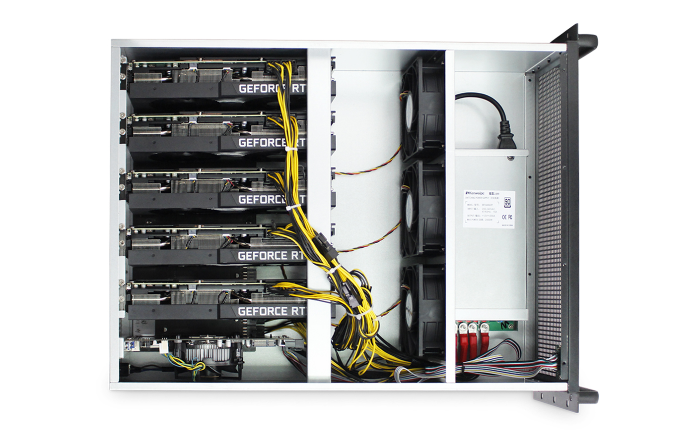 組件名稱詳細規格及參數尺寸(mm)650(L)*437(W)*177(H)主板IDC670底板CPUIntel G1840內存DDR3 4G筆記本內存系統盤Msata 64G電源2400W電源I/O擴展GbE*1、USB*2、VGA*1顯卡槽位顯卡位5個,間距70mm,可以安裝340mm以內長度的顯卡內部附件螺絲包,6P轉2個6+2P顯卡線300mm包裝方式天地盒+外箱包裝尺寸765*545*27