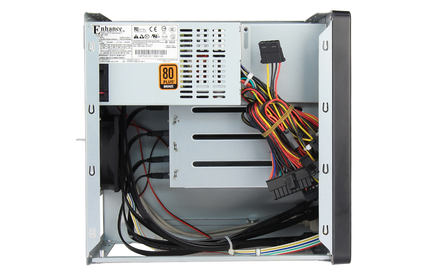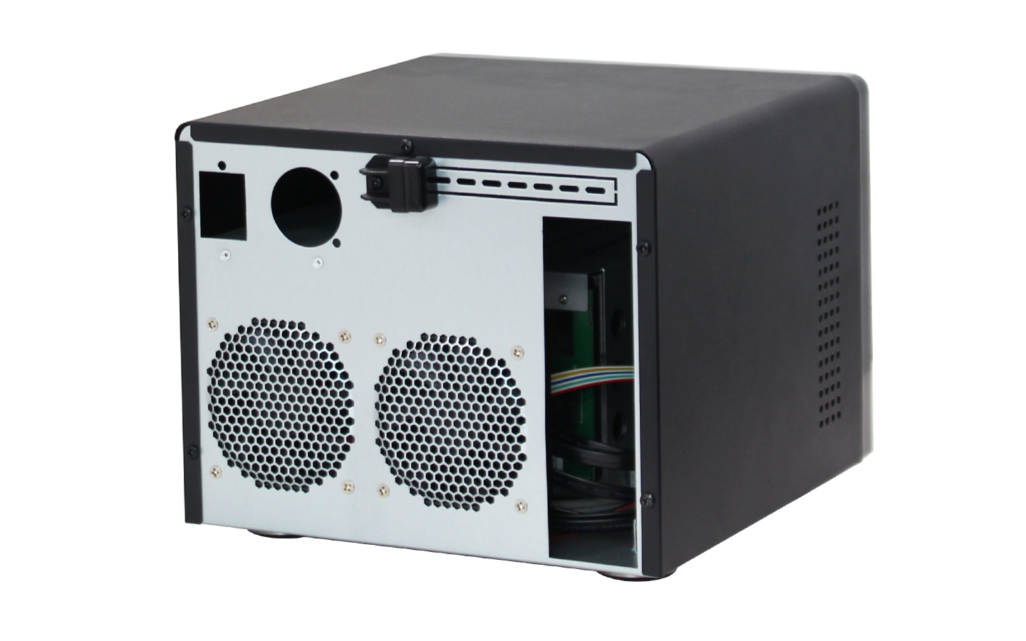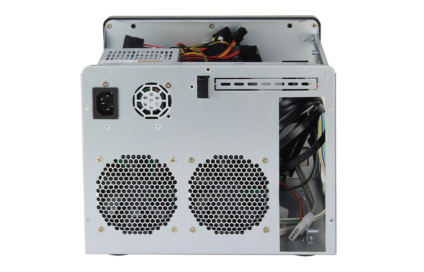 本款NAS-06機箱可安裝Mini-ITX(170mm*170mm)主板,安裝Flex小1U電源,支持6個3.5"熱插拔硬盤位,同時兼容2.5" SSD,標配2個8025風扇,具有良好的散熱效果,支持1個全高PCIE擴展槽。