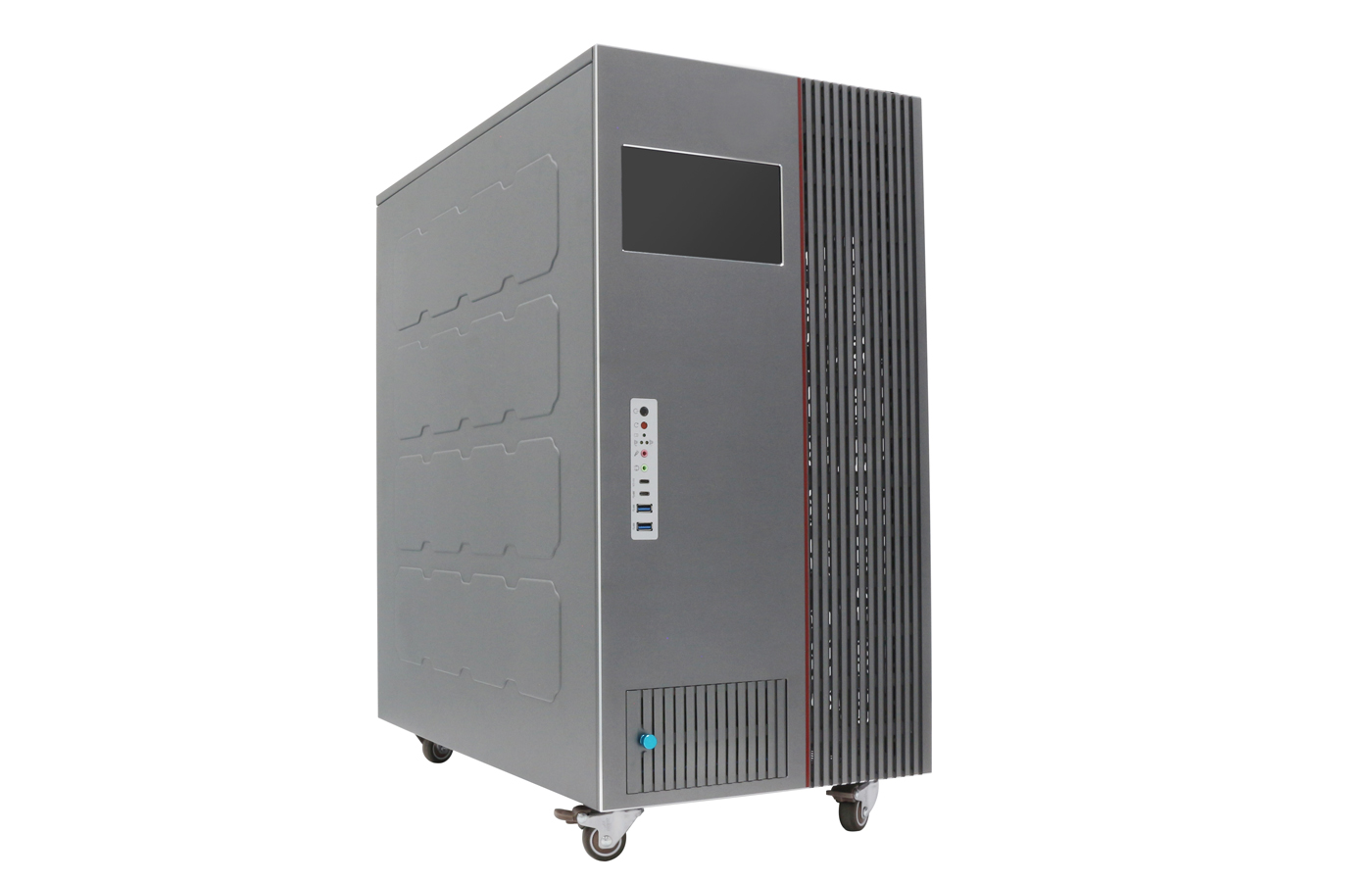 優秀的散熱設計,機箱支持冷排散熱,, 前面8個熱插拔2.5寸硬盤位,標準EATX及以下主板安裝位、支持4張GPU卡位, 14個擴展槽,頂部2個480*38水冷排安裝位,右側4個480*38水冷排安裝位,前左側2個12028風扇位,2個標準4UATX電源安裝位,采用7寸屏,需要顯示CPU/GPU溫度,上傳下載速度,硬盤溫度,上傳下載速度,廣泛應用于云計算、Al、大數據、深度學習等領域。