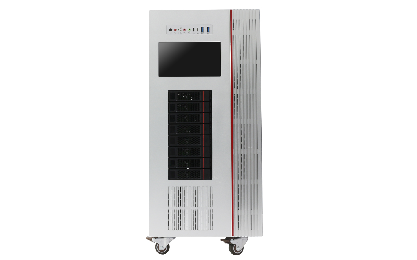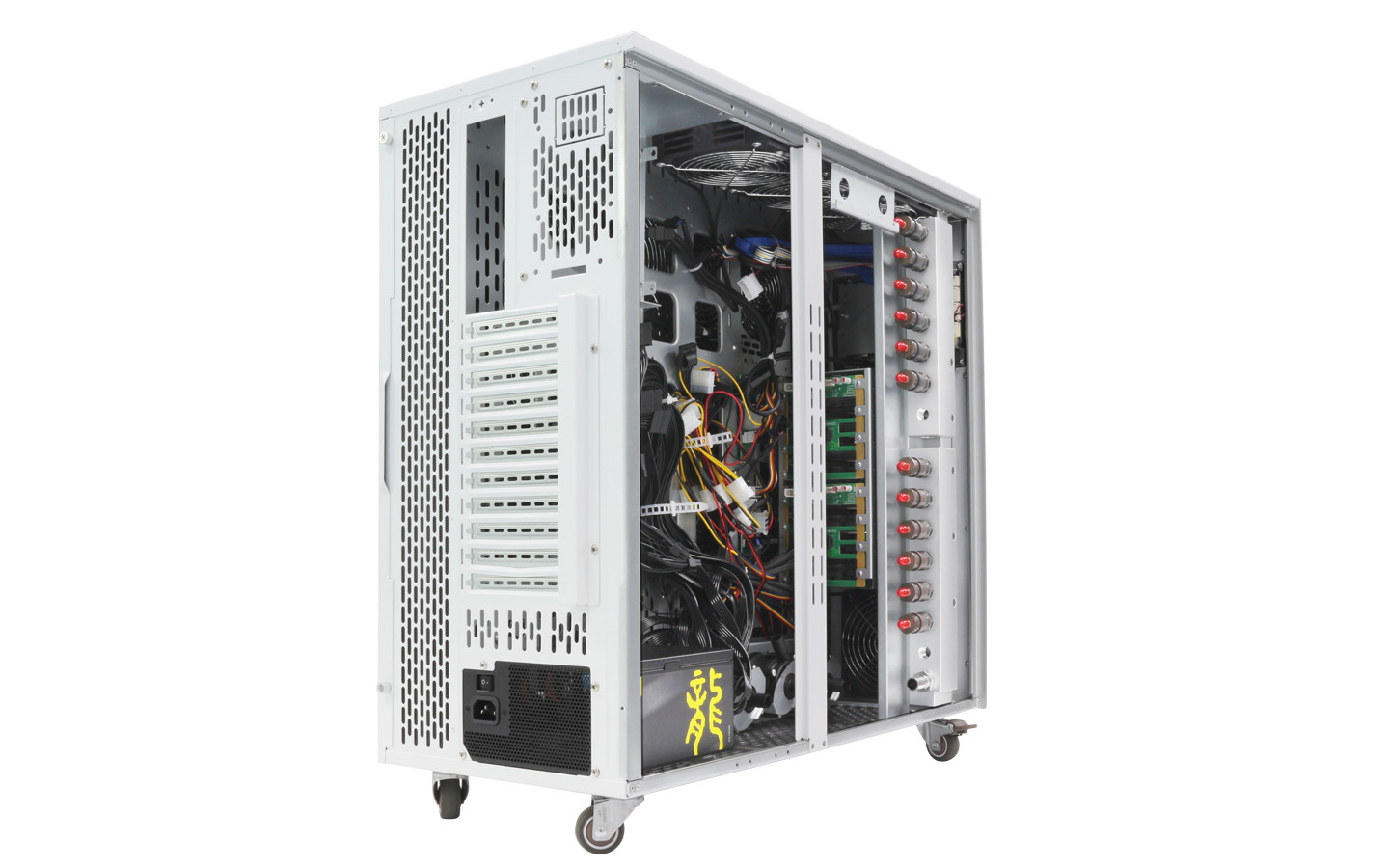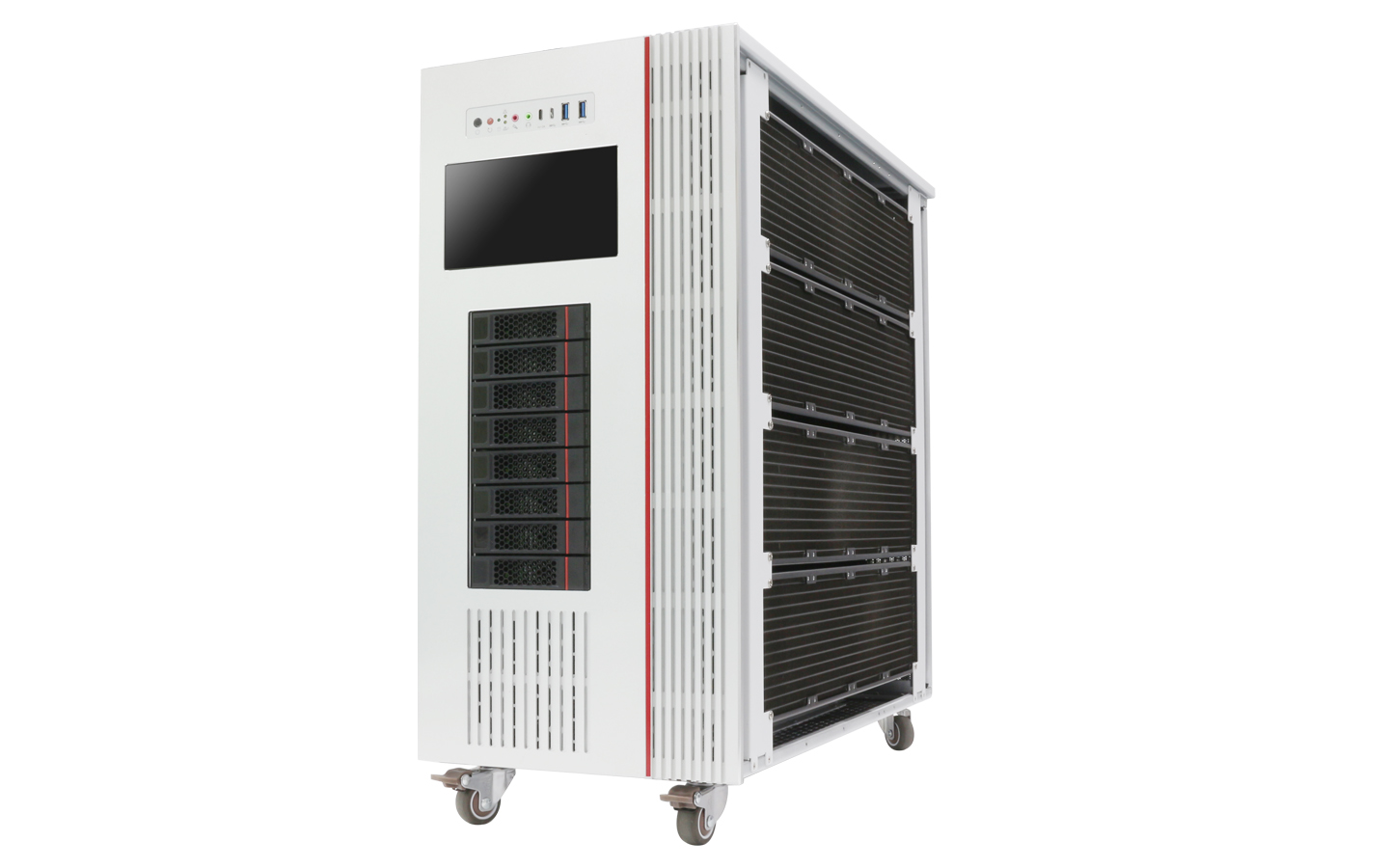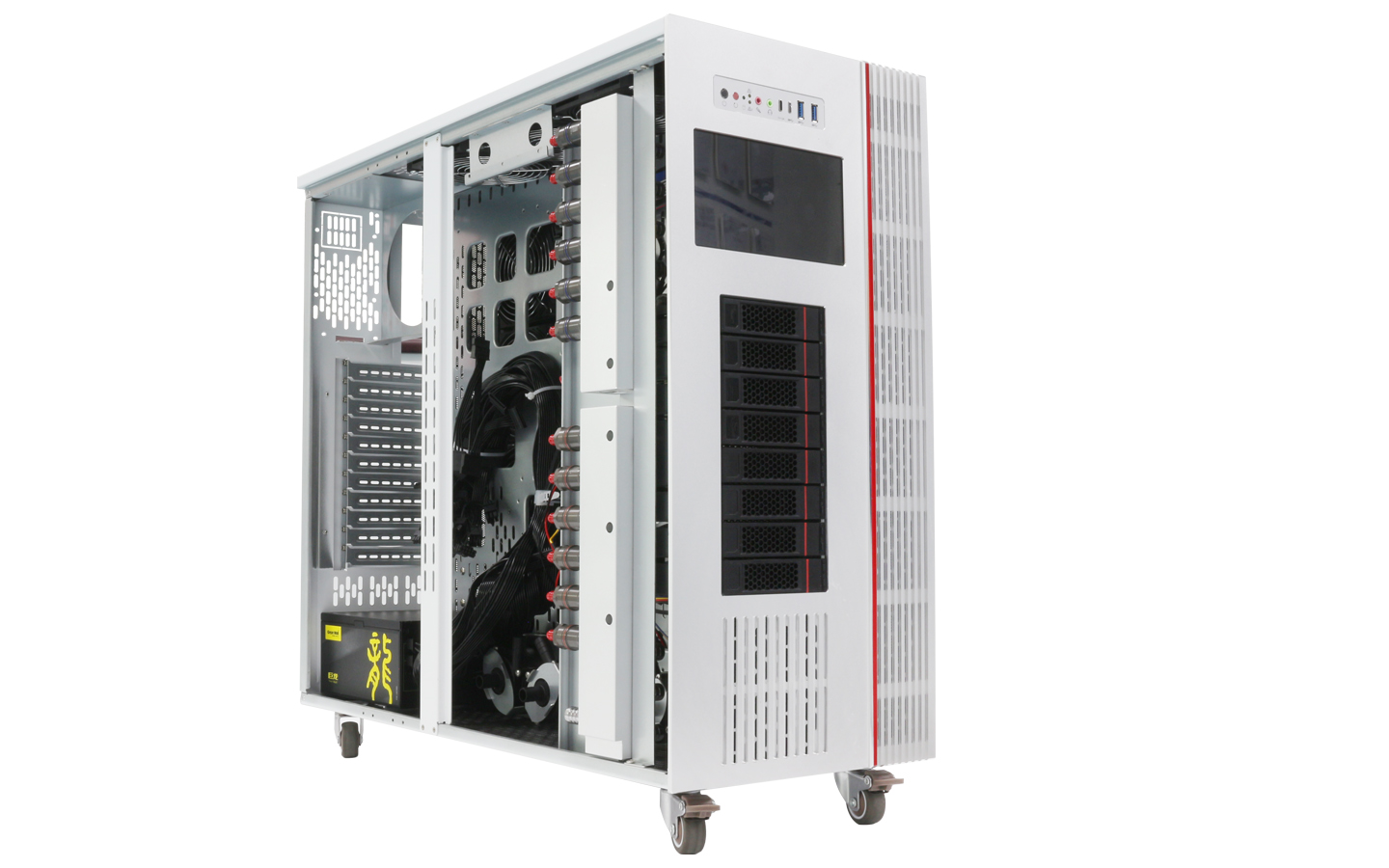拓普龍塔式機箱尺寸為L636*W280*H570MM,硬盤背板:一組 8盤位3.5寸硬盤背板,支持4個480冷排位,采用分水器方式,在計算性能、拓展能力、溫度控制、穩定性等方面都顯示出超凡的實力,能最大程度滿足人工智能等新興領域的開發與應用,適用于HPC、大數據分析、3D 圖形應用、視頻解碼、深度學習、科學計算等應用場景。