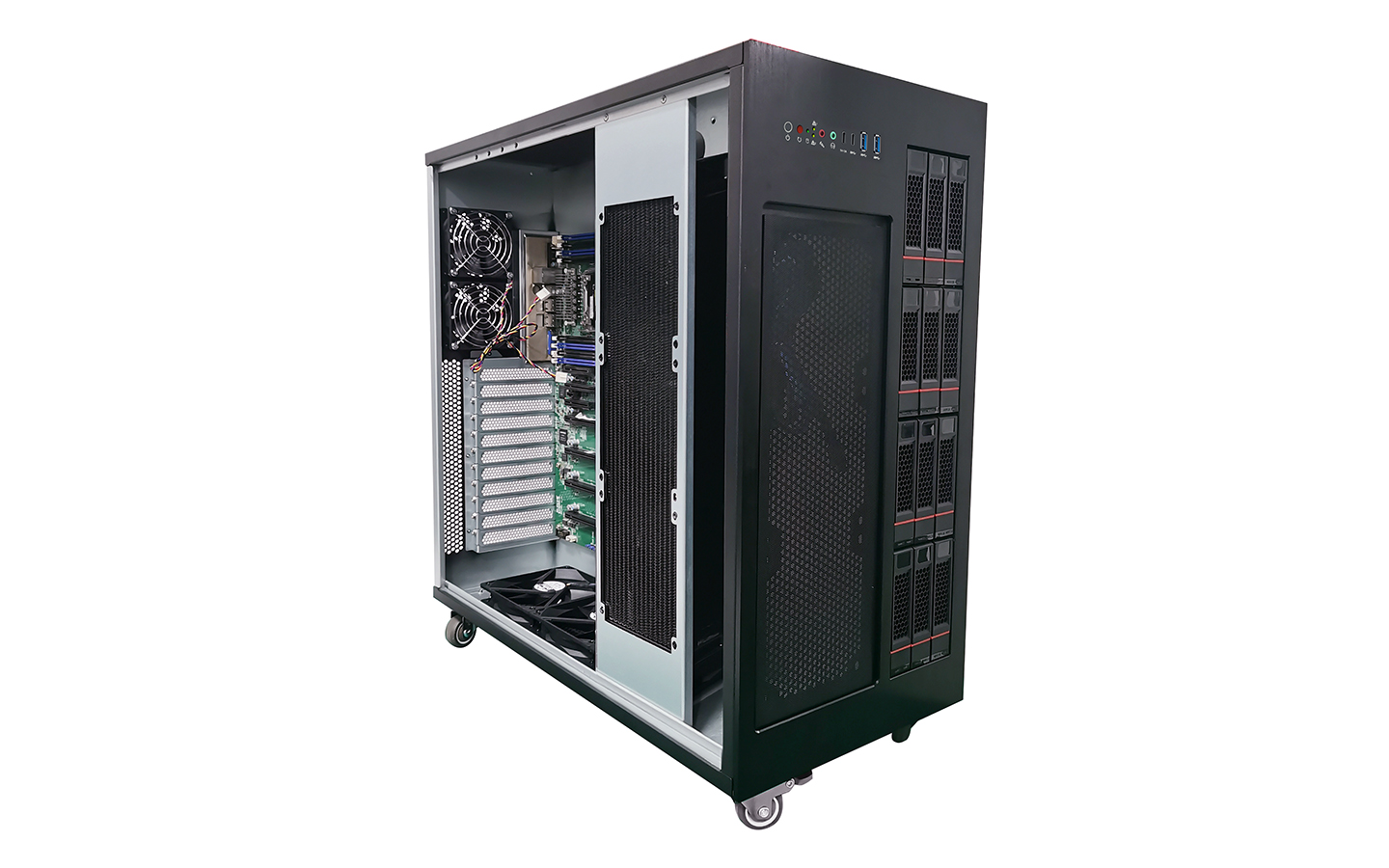 拓普龍塔式機箱尺寸為高530mm*寬275mm*深555mm,前置12盤位熱插拔3.5"兼容2.5",內置4個2.5",12位硬盤 MINI SAS-HD背板(12GB) SGPIO報錯功能,后置2個8公分風扇,內置2個8公分風扇,底部3個12公分風扇。 前面板3個12公分風扇位可安裝360冷板,頂部3個12公分風扇位可安裝360冷板,左側3個12公分風扇位可安裝360冷板,11個全高PCI/PCIE擴展槽位,豎插,能最大程度滿足人工智能等新興領域的開發與應用,適用于HPC、大數據分析、3D 圖形應用、視頻解碼、深度學習、科學計算等應用場景。